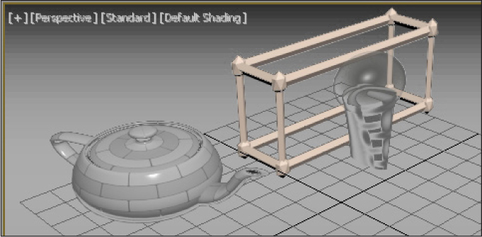 2. En el visor Perspective, haga clic sobre la tetera y verá aparecer las líneas que delimitan el objeto.