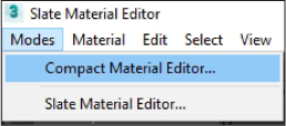 2. El editor de materiales se abre por defecto en el modo Slate Material Editor. Este modo resulta muy práctico cuando se está trabajando con escenas complejas en las que es preciso asignar muchos materiales y de distintos tipos. Y así podrá comprobarlo en el apartado de este libro dedicado a los materiales. Sin embargo, y como en este caso solo trabajaremos con uno de los objetos de nuestra sencilla escena, le mostraremos cómo cambiar al editor de materiales compacto. Pulse en el menú Modes y elija la opción Compact Material Editor.