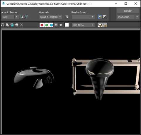 8. Por fin puede contemplar la escena que ha realizado a lo largo de estas lecciones de introducción. No hace falta que guarde el archivo de esta ventana, puesto que ya se ha guardado en la carpeta y con el nombre que le ha dado anteriormente. Cierre el cuadro de renderización y también el cuadro de diálogo Render Setup. Compruebe también antes de terminar que el programa ha generado un archivo de imagen en formato JPEG en la ubicación indicada con esta escena.