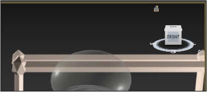 2. Ahora sí, en los cuatro visores podemos ver el cubo de vistas. El ViewCube ofrece 26 áreas definidas, clasificadas en los grupos esquina, borde y cara, sobre las que se puede pulsar para cambiar la vista del objeto. De esas 26 áreas, seis representan las vistas estándares ortogonales del modelo: superior, inferior, frontal, trasera, derecha e izquierda. Debido a la visualización desde la cámara anterior, podemos ver nuestra escena desde un punto de vista frontal. Vamos a devolver al visor su visualización predeterminada, es decir, en perspectiva. Para ello, sitúe el puntero del ratón sobre el cubo de vistas y, cuando aparezca la imagen de una casa, que corresponde a cualquier comando de inicio, pulse sobre ella.