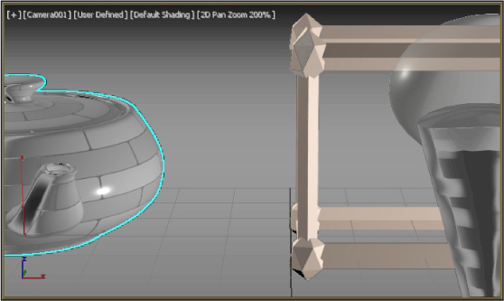 Sobre cualquier escena que tenga abierta en el área de trabajo de 3ds Max, en el visor en perspectiva o de cámara, active el modo 2D Pan Zoom y compruebe qué ocurre al aplicar un nivel de zoom elevado sobre una zona de la imagen. Una vez realizada la comprobación, salga del nuevo modo.