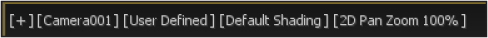 1. En este ejercicio conoceremos cómo activar el modo 2D Pan Zoom y veremos cómo se aplica sobre un visor que contiene una cámara. Para ello, le instamos a que recupere el archivo con el que trabajamos en las primera lecciones de este libro o, en su defecto, que abra el archivo lec2.4.max. Para empezar, asegúrese de que el visor que se encuentra activo es el denominado Camera001. (Recuerde que puede realizar esta comprobación en las mismas etiquetas de los visores.)