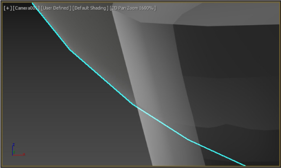 4. En la etiqueta del visor se muestra el nivel de zoom aplicado en cada momento. Amplíe mucho más la visualización, aproximadamente hasta un 1600 %, y desplácese por la escena manteniendo pulsado el botón del ratón.