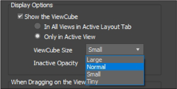 8. También es posible escoger el tamaño del cubo, que, por defecto, es Small. Despliegue el campo ViewCube Size y seleccione la opción Normal.