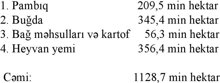 Kənd təsərrüfatı məhsullarının əkildiyi torpaq sahəsinin miqdarı: