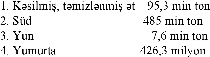 Heyvandan əldə olunan məhsul: