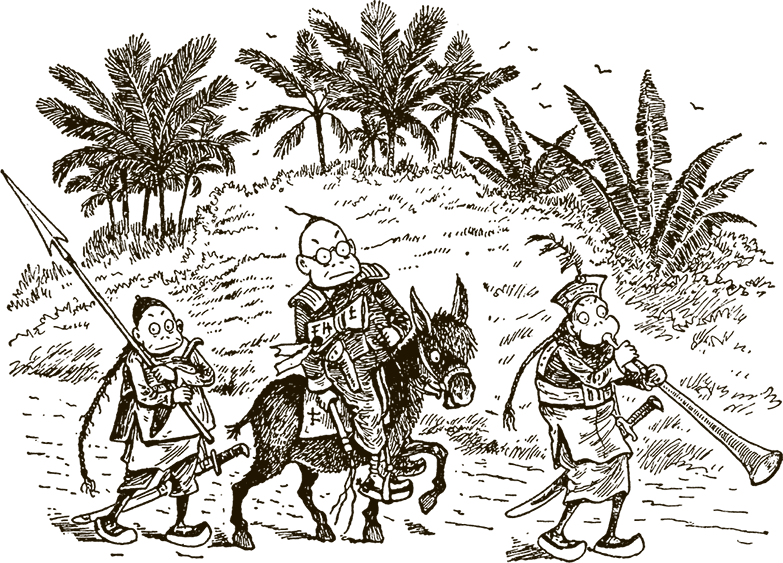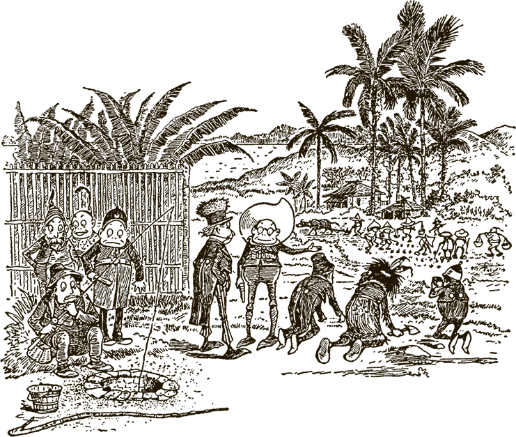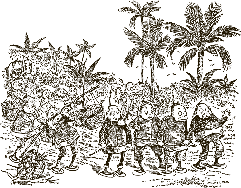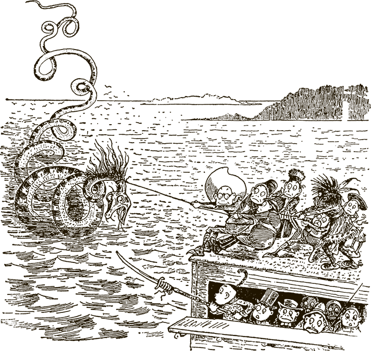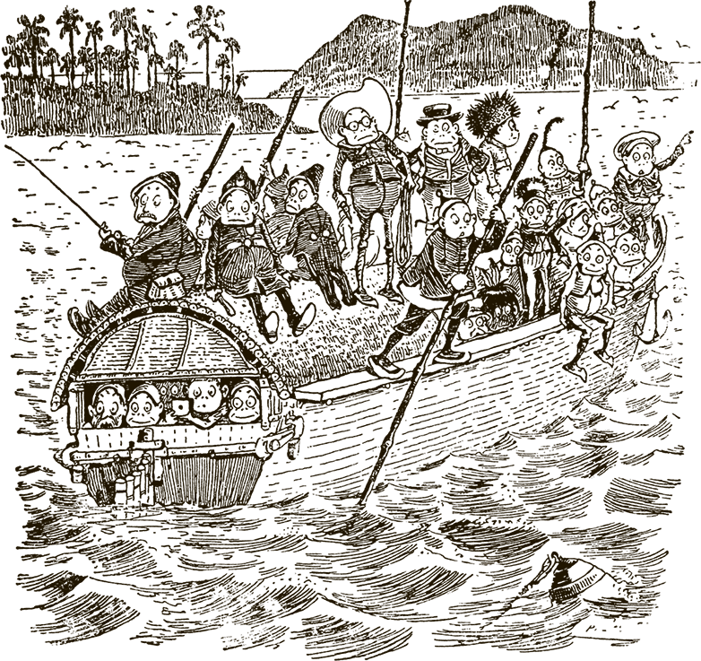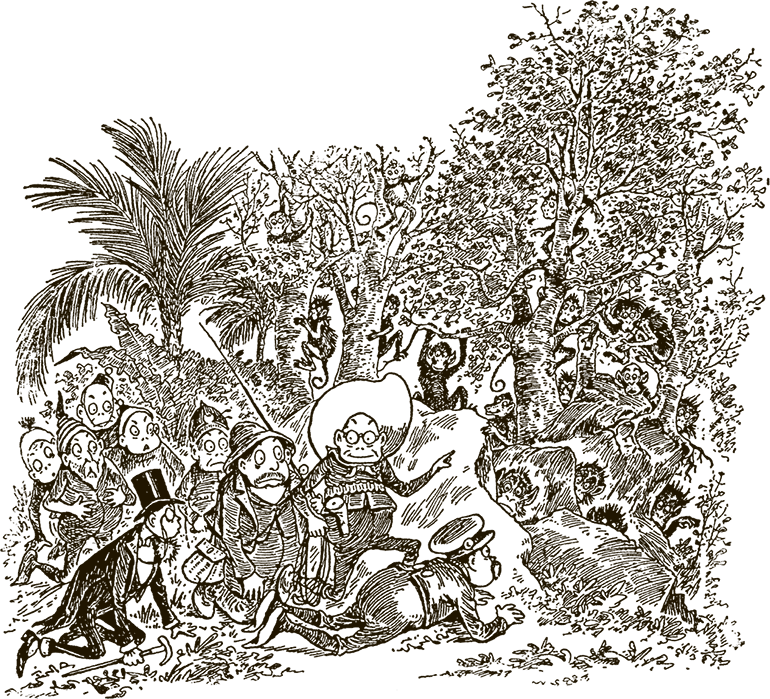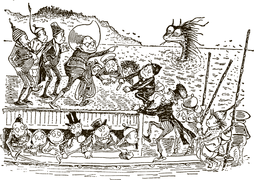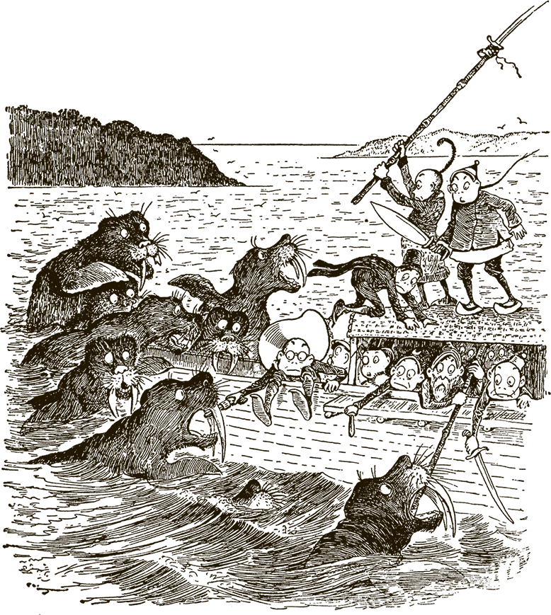 Как мартышки украли лодки у лесных человечков и тем пришлось возвращаться на свой остров на китайской джонке; как их в море атаковали моржи, а затем морская змея