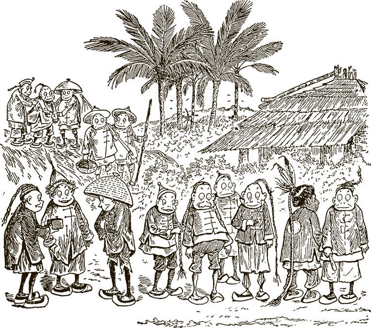 Крепко привязав джонку, мы высадились, и Мик, указывая на каких-то людей, толпившихся около двух хижин, провозгласил: