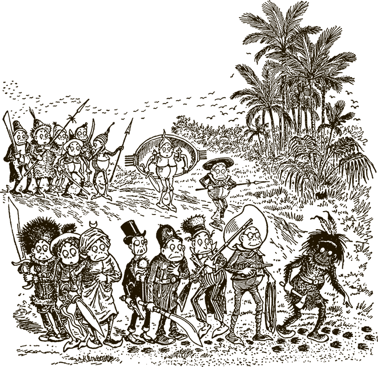 Когда всё было готово, Скок по сигналу Мика принялся дуть в длинную трубу, и кавалькада тронулась в путь.