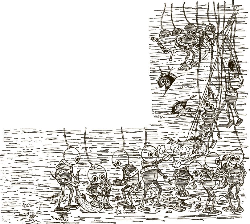 – А знаете что? – вдруг спохватился Мик, задумчиво глядя туда, где исчезли волки. – Мне кажется, они спрятались на морском дне. Что, если и нам спуститься за ними? Вот была бы потеха, если б мы их поймали!
