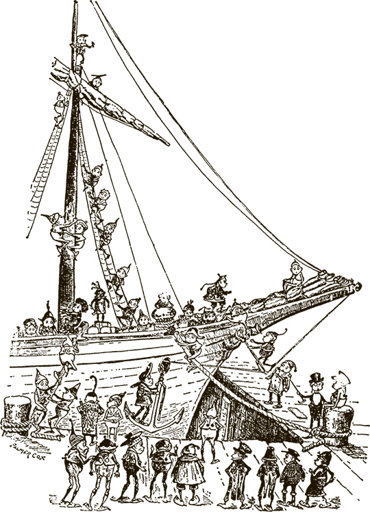 И вот наш корабль на всех парусах помчался по морским просторам, чтобы доставить лесных человечков в крупный приморский город, где можно отлично отдохнуть перед новыми путешествиями.