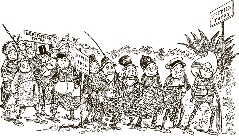 Выкрасть из сада англичанина гамак особого труда не составило, зато над табличками с надписью «Берегитесь тигра» малютки проработали всю ночь. К утру вся дорога, по которой люди ходили к реке, была уставлена столбами с предостережением.