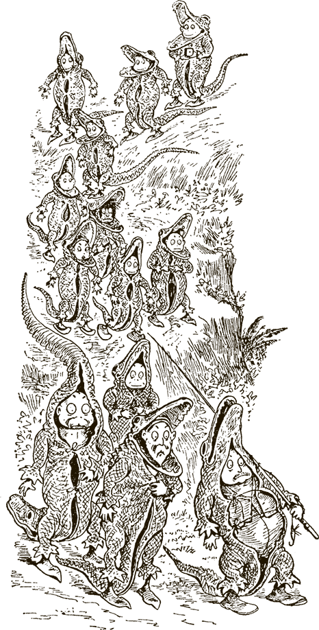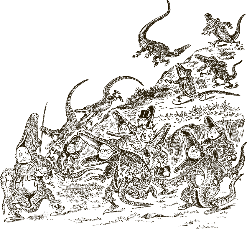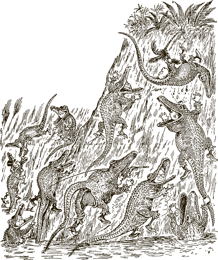 Шумной ватагой малютки в крокодильих шкурах двинулись в путь.