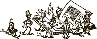 Среди пешеходов, весело хихикая, толкались и эльфы. Больше всех был возбуждён Мурзилка: то бегал вокруг прохожих, оглядывая их наряды, то вскакивал в проезжающие экипажи, то входил в отворённые двери магазинов, – и было видно, что всё ему в Варшаве чрезвычайно нравится, всё приводит в восторг.
