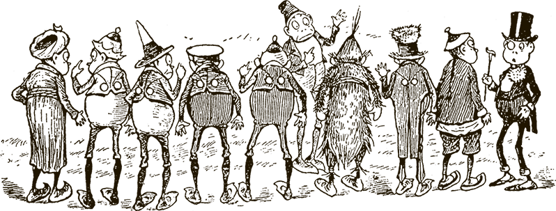 Мурзилка не принимал участия в общем веселье, а, засунув руки в карманы, стоял в сторонке, наблюдал за товарищами и бубнил себе под нос: