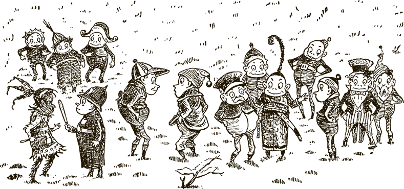 – Ну-с, а теперь вперёд, храбрые воины! – И лесные человечки смело отправились туда, где, как разузнал Пичужка, собрались враги.