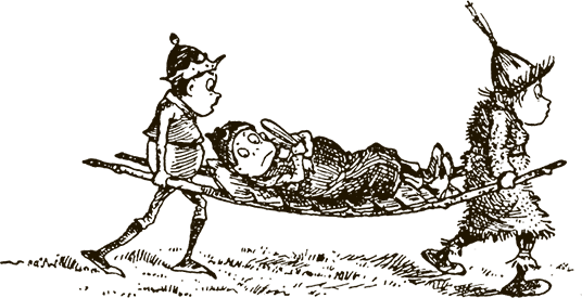 Победа досталась лесным человечкам нелегко – среди эльфов оказалось много раненых. Иных приходилось уносить с поля битвы на носилках, так что доктор Тюбик-Мазь с ног сбился, бегая между ранеными: кому ногу перевязать, кому руку.