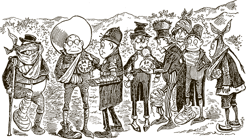 Я такой же маленький лесной человечек, как и мои друзья, лесные эльфы, и вместе с ними каждый год отправляюсь странствовать по всему свету. В каких только странах мы не были! Чего только не видели и чего не испытали! Про наши странствования уже написано много-много, но далеко не всё. Этим летом мы опять совершили большое путешествие – вот про него-то я и хочу вам подробно рассказать. В этом путешествии приняли участие почти все мои друзья, которых вы хорошо знаете: наш доктор Тюбик-Мазь, Дедок Бородач, Знайка, который всё знает, и его родной брат Незнайка, который не знает ничего, ловкий Скок, охотник Мик, Вертушка, китаец Чи Качи, Индеец, Пуговка, Всезнайка, который обо всём узнаёт первый, рыболов Лим, американец Джон… Впрочем, если бы я захотел перечислить всех малюток, то пришлось бы исписать много-много страниц – такой длинный получился бы список. Первым среди эльфов значусь я, Мурзилка. И это понятно: как вам хорошо известно, я самый умный, самый храбрый, самый смелый. И хотя товарищи обо мне другого мнения, они, скажу без ложной скромности, несправедливы. Впрочем, вы сами всё узнаете из моего рассказа…