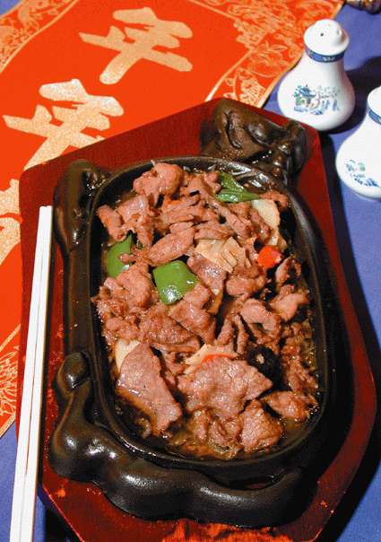 Морковь, сладкий перец и сельдерей очистить, промыть и мелко нарезать. Кунжутное масло раскалить на сковороде, обжарить в нем овощи, затем убавить огонь, влить мясной бульон, посолить по вкусу и тушить в течение 10 минут.