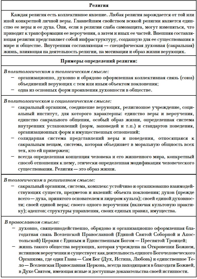Статья 14 Конституции нашего государства определяет, что «Российская Федерация – светское государство. Никакая религия не может устанавливаться в качестве государственной или обязательной. Религиозные объединения отделены от государства и равны перед законом». Под термином «светское» понимается не духовное, мирское, гражданское. В действительности государство отделяется не от религиозных объединений и адептов, а от их духовных вероучений и внутренней ве-роучительной (сакральной) практики.