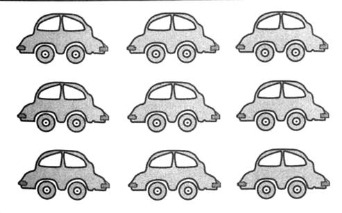 Я ее сделал вместе с миссис Питерc, которая преподает у нас в школе рисование. Это был оттиск. Это когда ты рисуешь картинку на куске линолеума, а миссис Питере вырезает ее по контуру. Потом ты красишь линолеум чернилами и оттискиваешь на бумаге. Вот почему все машинки выглядят одинаково. Я нарисовал одну машинку и оттиснул ее на бумаге 9 раз. Миссис Питере предложила сделать много машинок, и мне понравилась эта идея. А потом я выкрасил все машинки в красный цвет, и это обозначало очень-очень хороший день.