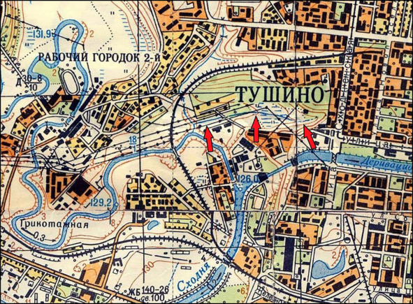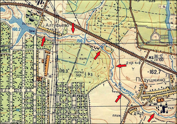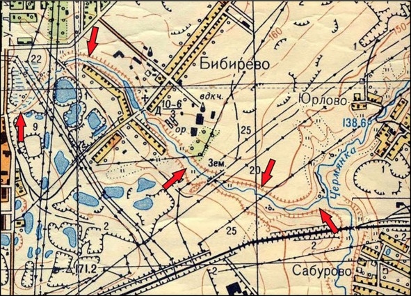 Алтуфьевская речка ошибочно отмечена как Чермянка. Карта Москвы 1968 года