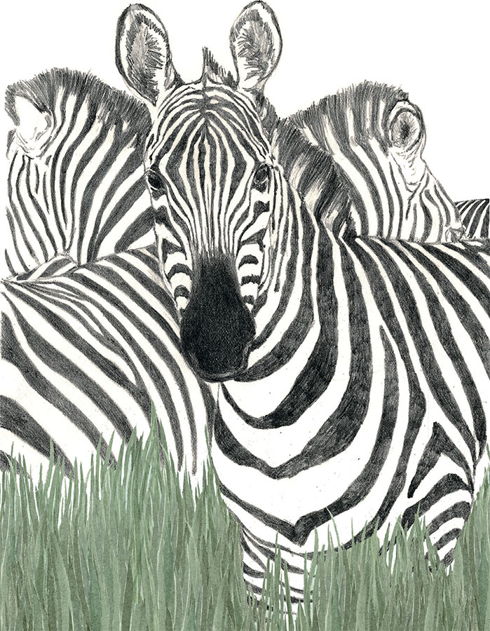Зебры утверждают, что у каждой из них есть свой уникальный отчётливый узор, который они могут распознать с первого взгляда. К сожалению, носороги не могли похвастаться такой способностью, в общем-то, как и остальные животные. Даже мухи цеце избегают зебр, потому что от пёстрых узоров у них кружится голова. Издалека чёрно-белое стадо выглядит как гигантский полосатый зверь размером со слона или даже с целую саванну.