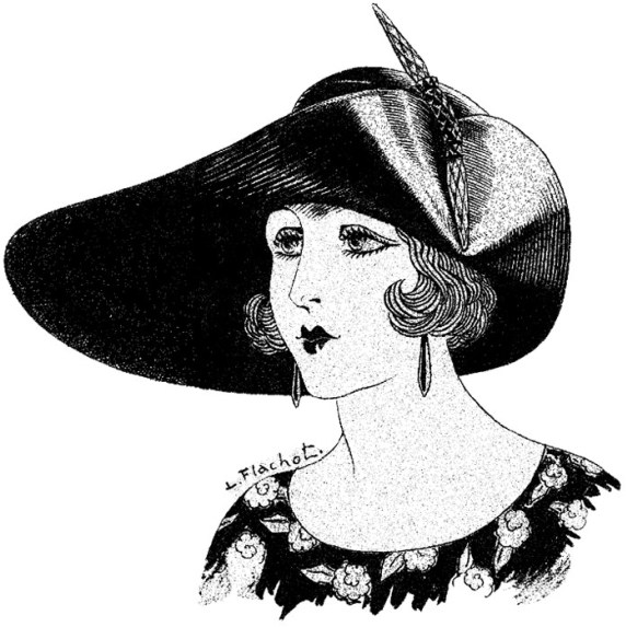 Мягкая широкополая шляпа на женской голове предполагает угрозу совершенно иного рода; маскулинная и провокационная, она была одной из любимейших шляп суфражисток. Дебаты о правах женщин особенно остро велись в первые годы XX столетия, однако никогда более они не вызывали такого яркого визуального эффекта, как в 1920‐х годах, когда, завоевав избирательное право, женщины шокирующим образом укоротили волосы и юбки. В ответ на прежнюю гигантоманию в шляпном деле, к бунту присоединился радикальный клош и простая трилби. Шляпы редко играют ключевые роли в литературных произведениях, однако в «Зеленой шляпе» (1924) Майкла Арлена анархистка Айрис Сторм мчится по страницам романа на желтом автомобиле Hispano-Suiza и в зеленой шляпе. Вначале мы видим, как она «смело носит шляпу: …но глаз ее не было видно из‐за тени, падавшей от полей, а поля шляпы были поистине пиратскими»[95] (ил. 17). В последний раз мы видим зеленую шляпу лежащей на дороге после того, как ее хозяйка покончила жизнь самоубийством, спровоцировав автокатастрофу. Верная своей природе, шляпа сигнализирует об опасности, но в атмосфере гедонизма, характеризовавшей период между мировыми войнами, опасность угрожала лишь самой Айрис.