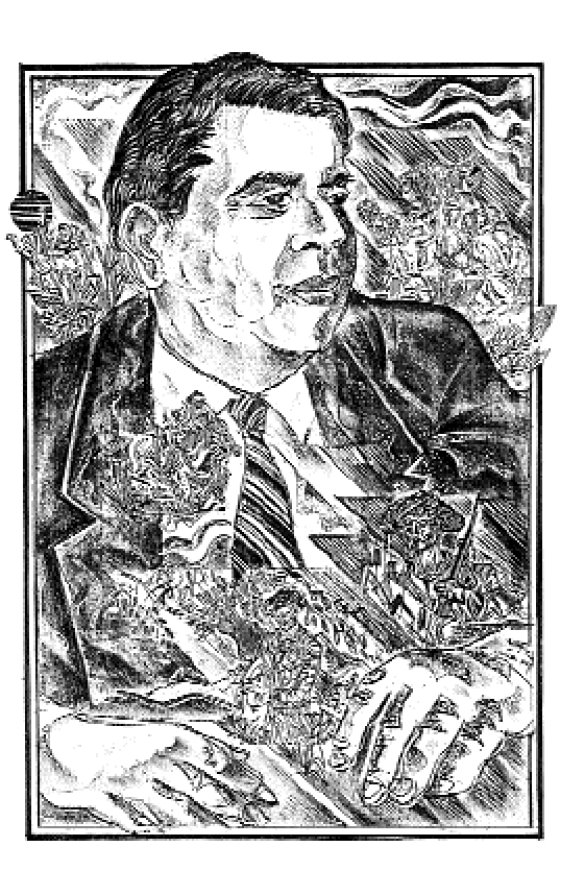 Salim qassobning ko‘z o‘ngidagi haligi og‘ir, bosiq, shoshmasdan go‘sht chaynab o‘tirgan ulug‘vor yigit o‘rniga bamisoli dahshatli bir dev paydo bo‘lgan edi: yirik ko‘zlari kosasidan chiqib ketgudek olaygan, ahyon-ahyonda sherdek pishqirib-pishqirib qo‘yyapti u. Orqa devorga avval katta eshik hajmida to‘rtburchak qilib chizib-chizib oldi. Chiziq o‘rnidan devorni kertib tusha boshladi. Uning harakatlari shunday tez, shunday chaqqon ediki, goho ko‘z ilg‘amay qolardi.