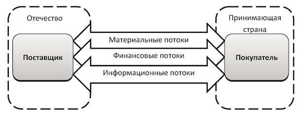 Пожалуй, самое лапидарное позитивистское определение глобальной логистики – «поток материалов, информации и денег между странами» [Frazelle, 2002, р. 10] – позволяет наглядно построить кросс-граничный участок глобальной цепи поставок (рис. 1.6), где отображены три типа логистических потоков: материальные (товарные), финансовые и информационные. Такая трехчастная структура абсолютно идентична структуре международного маркетингового канала [Черенков, 2003с, с. 23] (см. рис. 1.2), где вдобавок к обратному товарному потоку в рамках операций встречной торговли существует, в частности, материальный, или товарный, поток реверсивной логистики [Шахназарян, Потапова, 2013].