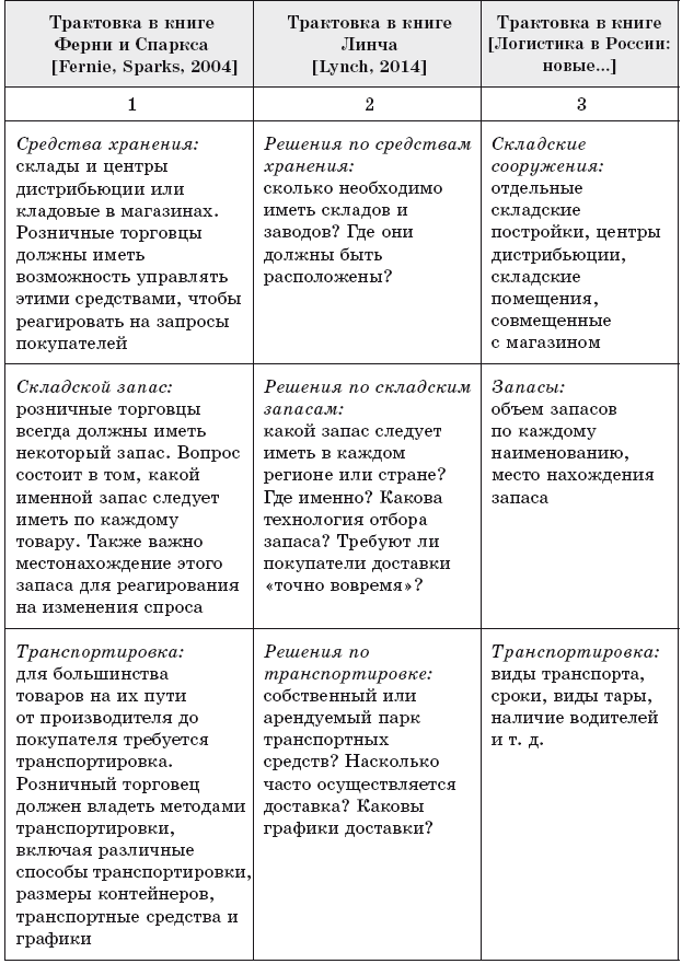 Составлено по: [Fernie, Sparks, 2004; Lynch, 2014; Логистика в России: новые…, 2013].
