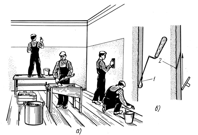 Рис. 2.4. Нанесение штукатурного раствора на стены и потолок