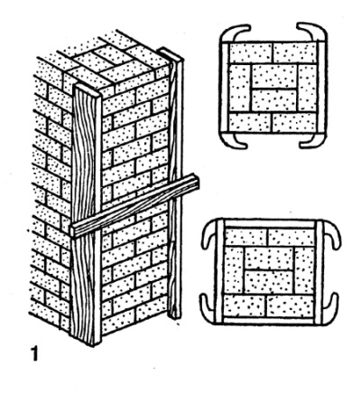Колонны. При оштукатуривании гладких четырехгранных колонн (рис. 2.9) на двух противоположных сторонах колонны укрепляют точно по отвесу хорошо выстроганные правила так, чтобы их ребра выступали из-за плоскости колонны на толщину штукатурного слоя – 15–20 мм. Между правилами последовательно наносят слои раствора – обрызг, грунт, накрывку, которые разравнивают по правилам деревянной рейкой. Затем правила снимают и перевешивают на другие стороны колонны. Оштукатурив все четыре стороны колонны, натирают усенки.