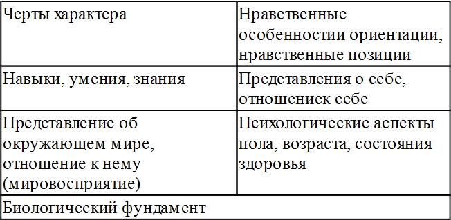 В нашу эпоху переоценки многих ценностей, утверждения новых начал общественной жизни важность проблемы индивидуальности еще больше возрастает. От развития и совершенствования индивидуальных качеств людей много зависит в строительстве нового общества. В области борьбы с преступностью значение индивидуальности определяется необходимостью улучшения индивидуальной профилактики преступлений, индивидуализации уголовных и иных наказаний, индивидуального подхода к исправлению преступников. Только учитывая индивидуальность и неповторимость человека, можно понять, почему объективно одинаковые внешние воздействия вызывают разную реакцию у различных людей. Негативные социальные влияния, например, могут привести к формированию антиобщественной направленности личности, только взаимодействуя с индивидуальными, в первую очередь нравственно-психологическими особенностями человека, конкретными условиями его жизнедеятельности, индивидуального бытия. Можно представить следующую схему психологической структуры личности преступника, каждая подструктура которой взаимодействует со всеми остальными.