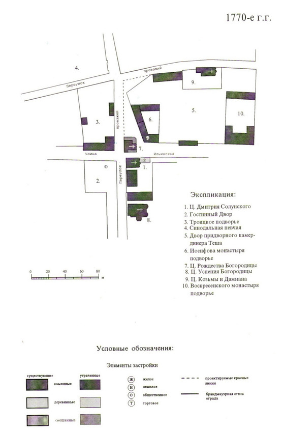 Рис. 1.10. План Ильинской площади 1770 г. Схема выполнена Е. А. Антиповой 1995