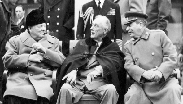 Документальная фотография. Ялта. Встреча 4—11 февраля 1945 г. лидеров трёх стран антигитлеровской коалиции – Велико-британии, США и СССР: Черчиля, Рузвельта и Сталина.