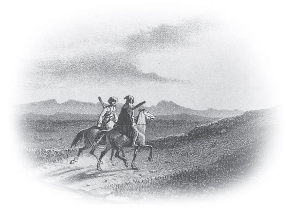 Через день, на восходе солнца, три конника, закутавшись в бурки, ехали по дороге, ведущей в Гоцатль.