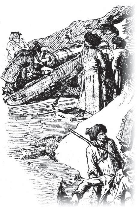 Отряд выступил на рассвете. Солдаты шли по склонам крутых кряжей, глубоким ущельям, местами засыпанным снегом, скользя по отвесным скатам скал. Впереди – проводники-горцы, составлявшие туземную милицию. Цепляясь за голый плитняк, они медленно передвигались, выбирая места поудобнее. За ними гуськом, ведя на поводу лошадей, – кавалерия. За конными следовали сапёры и рабочие команды от всех батальонов во главе с инженер-полковником Миллером. Сапёры и строители расчищали тропы на косогорах и крутых спусках для пехоты, артиллерии и вьючного обоза. Двигались иногда ползком над тёмными пропастями, нитью, держась друг за друга, то поднимаясь на вершины поднебесных кряжей, поражающих взоры заоблачным видом, вечными снегами ослепляющей белизны, то упираясь вытянутыми ногами в каждый уступ, скользили вниз, поддерживая друг друга и животных.