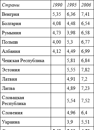 Источник: Таблицу составил Зденек Кудрна (Центрально-Европейский университет) по данным «Economist Intelligence Unit – Country Reports» (1990–2008).