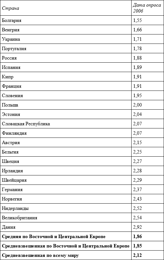Таблица 3 ясно показывает, что в постсоциалистических странах высокую значимость свободе придают значительно меньшее число людей, чем в странах, которые имели капиталистическую систему до 1989 г.