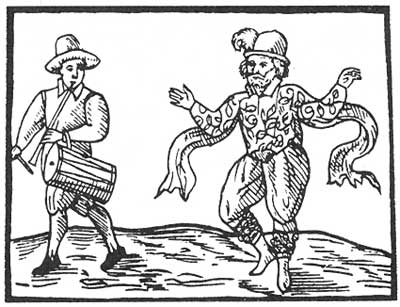 Уильям Кемп, главный комик и танцор в труппе Шекспира в 1590-е годы. Гравюра, 1600 г.