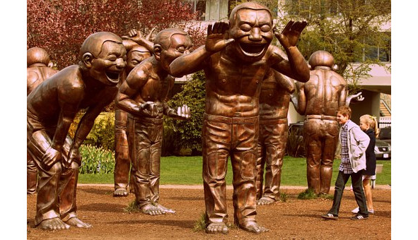 Иисус, Моисей и Бог-отец играют в гольф. Моисей бьёт по шарику, и тот падает в океан. Моисей делает шаг, воды расступаются, Моисей бьет второй раз, и шарик попадает в лунку. Бьет Иисус, шарик опять попадает в океан, но Иисус проходит по воде, как по тверди земной, делает второй удар и попадает в лунку. Бьет Бог – в океан. Там шарик съедает рыбка, рыбку подхватывает чайка, на чайку нападает коршун и несет ее в сторону лунки. Когда коршун пролетает над лункой, гремит гром, молния ударяет в коршуна, чайка от испуга открывает рот, и шарик попадает в лунку.