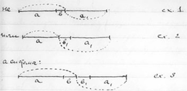 Схема 3. Пример моего монтажа в «Потёмкине» – повторение одного и того же монтажа (двумя-тремя клетками) в обоих кусках, якобы случай неподчищенной подрезки.