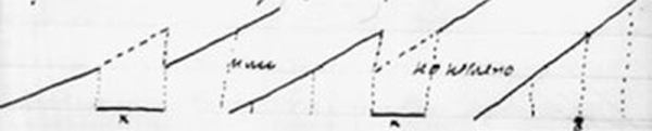 что одновременно 1) дает задержание по времени х для увеличения длительности восприятия и 2) дает еще своеобразный «отказ» к новому куску. Не здесь ли и искать аналогию «отказу» в движении, когда припайка одного элемента движения к другому непосредственно – безотказно недопустима и «слепит» (ослепляет) каждое в моменте сочетания. Любопытно, что здесь это в долях секунды. Клеточные единицы!