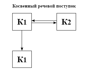 Коммуникант К1 ведет диалог непосредственно с К2, не обращаясь прямо к присутствующему КЗ, однако цель К1 – косвенно воздействовать на КЗ.