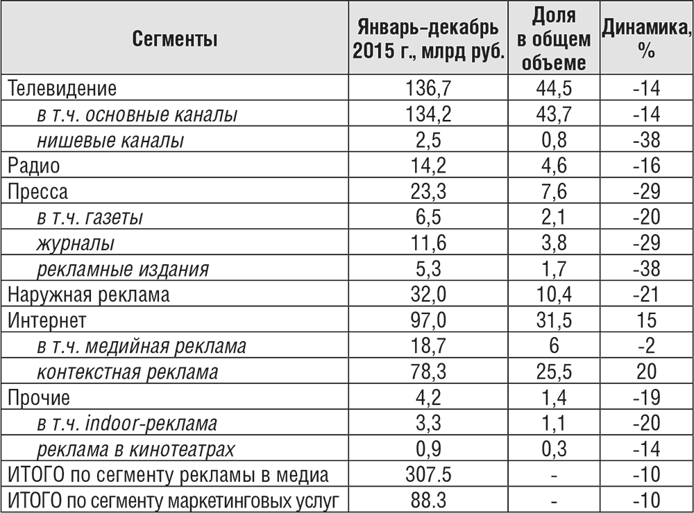 Таблица 5. Объем рынка маркетинговых коммуникаций, 2015 г.