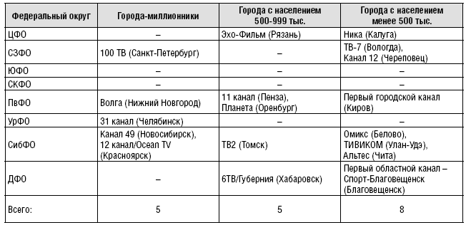 А каналы второго типа, не имеющие ярко выраженных политических амбиций и ориентированные прежде всего на коммерческий успех, понимают, что основная доходная база для них – городская аудитория регионального центра, которая, как правило, очень неплохо охватывается кабельным телевидением.