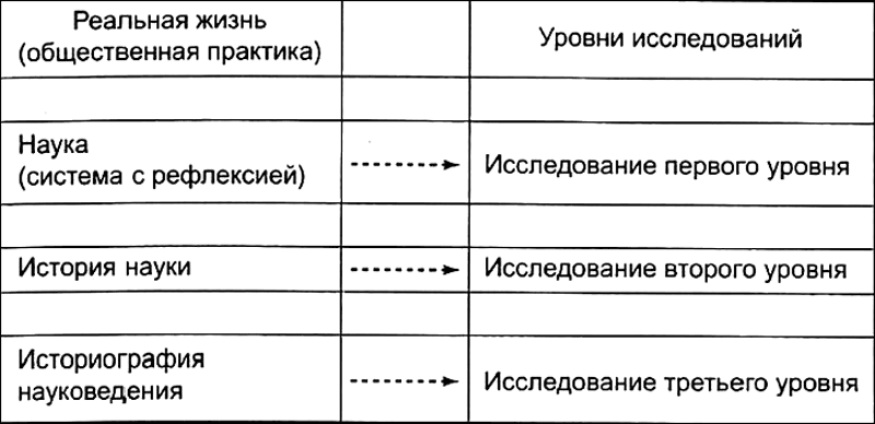 Таким образом, можно выделить три основных предметных уровня историко-научных исследований: