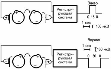 При записи с помощью усилителя постоянного тока можно получить информацию об ориентации глаз, при использовании усилителя переменного тока – только запись движений глаз.