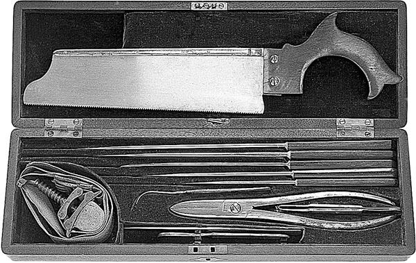Не забывайте, что операции в то время проводились не так, как сегодня. Вот, например, описание операции по ампутации бедра: «Были сделаны два боковых разреза, чтобы можно было отвернуть кожу. У границы отвернутой кожи мышцы перерезаны двумя сильными сечениями и кость перепилена. Длительность операции – 1 минута 30 секунд. Было наложено шесть лигатур, одна кожная артерия перекручена. Во время операции и наложения повязки больной то и дело впадал в глубокий обморок, который преодолевался холодным опрыскиванием лица и груди, втиранием под носом аммиачной нюхательной соли и небольшими дозами винного напитка. Больной просил соленого огурца и получил ломтик».
